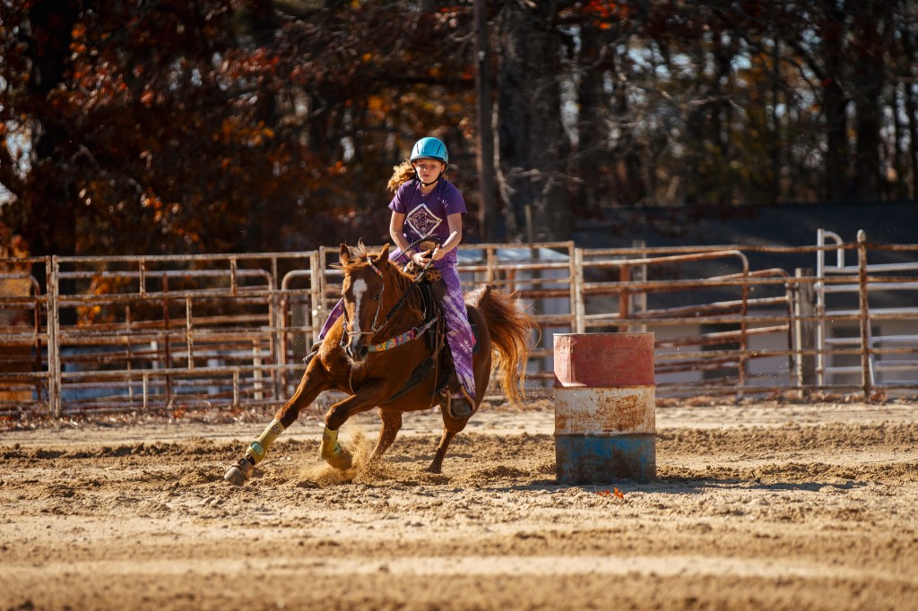 We currently offer barrel racing, speed pole (a single pole set up for peewees only), pole bending, and Texas barrel events.